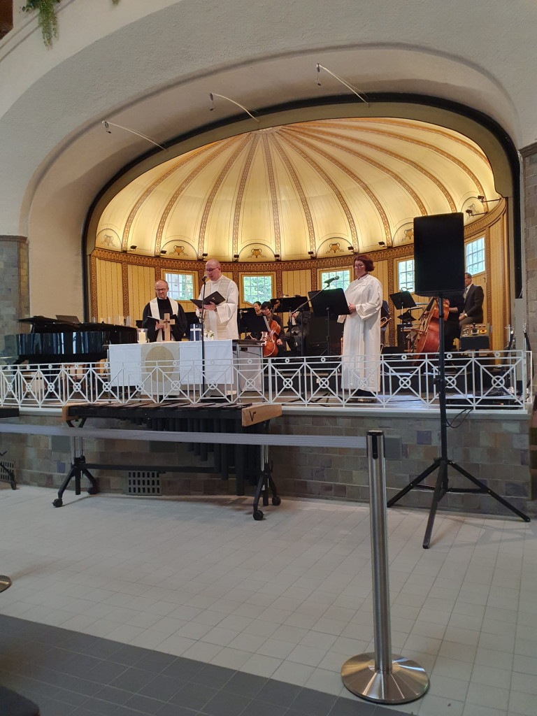 Am Christi Himmelfahrtstag (29. Mai 2025) feierten über 300 Gottesdienstbesucher aus Nah und Fern den ökumenischen Festgottesdienst in der Wandelhalle im Kurgarten in Bad Kissingen. Eingeladen hatte dazu die ökumenische Gäste,- Kur- und Rehaseelsorge, der Evang.- Luth. Kirchengemeinde Bad Kissingen, die kath. Kirchengemeinde Herz - Jesu und des Bistums Würzburg, die den Gottesdienst gestaltete. Gemeindereferentin Petra Müller (kath. Kurseelsorge) und Diakon Maik Richter (evang. Gäste- und Tourismusseelsorge) führten durch den Gottesdienst und die Staatsbad Philharmonie Kissingen gestaltete diesen musikalisch.